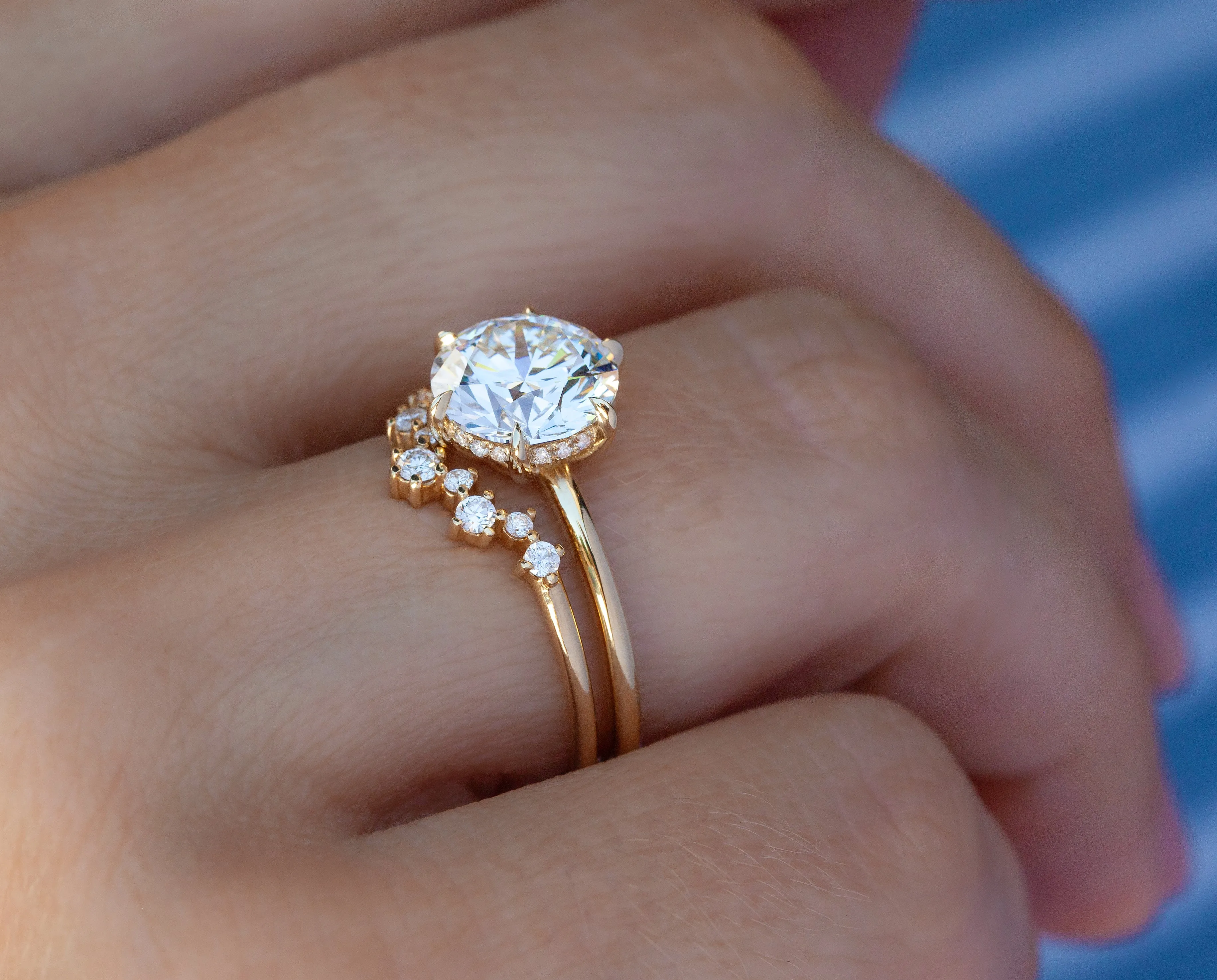- 0.07-Carats of F Color VS Clarity Diamonds on Hidden Halo