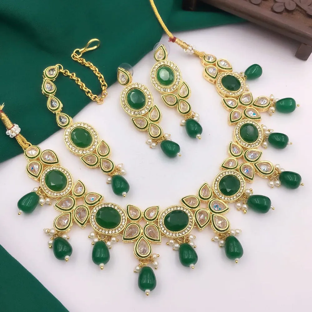 5G Jewellery Gold Plated Crystal Stone And Beads Necklace Set