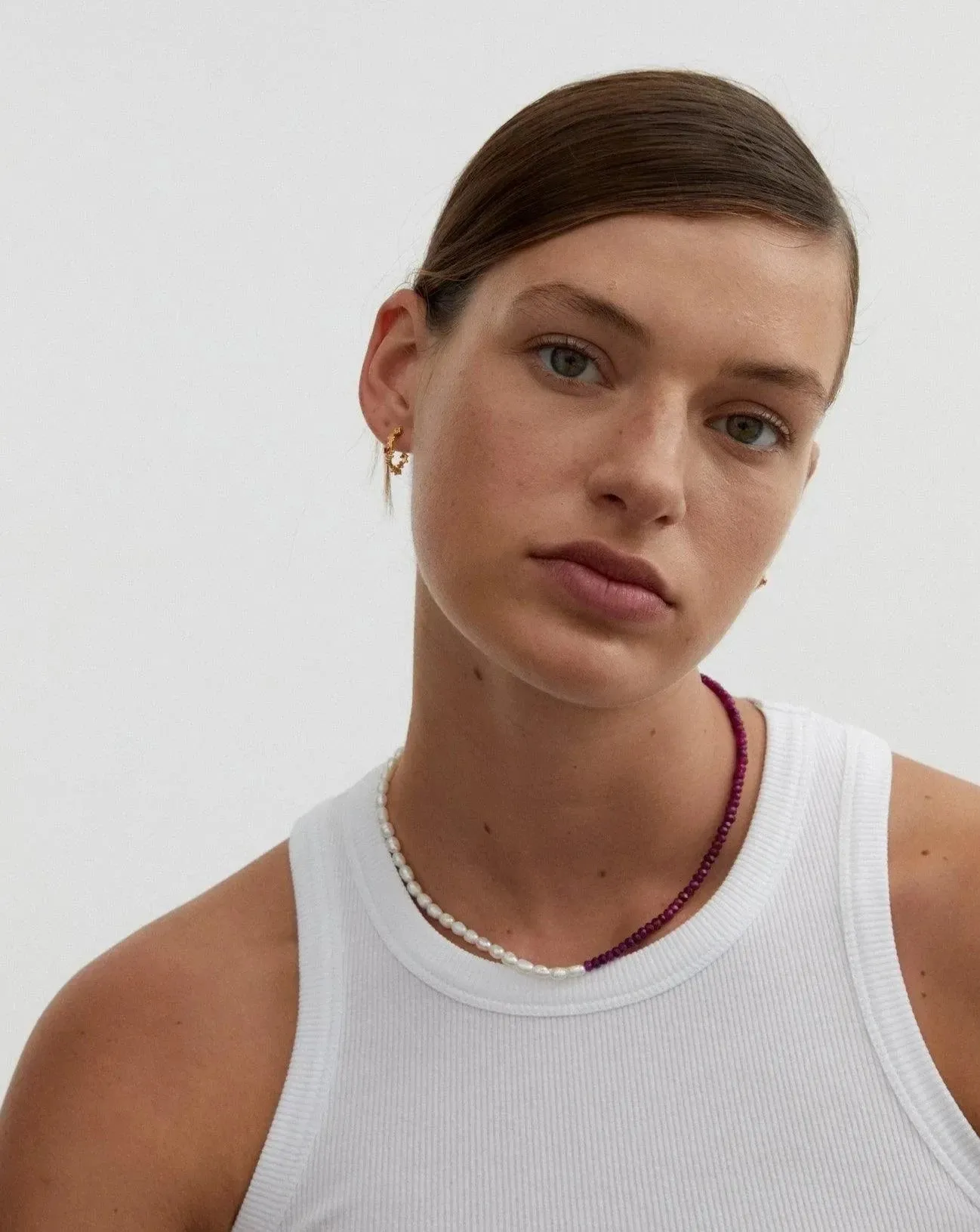 Coloured Amethyst style beads and Freshwater Pearls form this dual tone birthstone necklace.