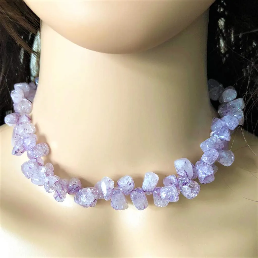 Purple Ice Flex Quartz stones have a crackle effect inside of them. These stones are uneven shapes that are colored but translucent and often are reflective.