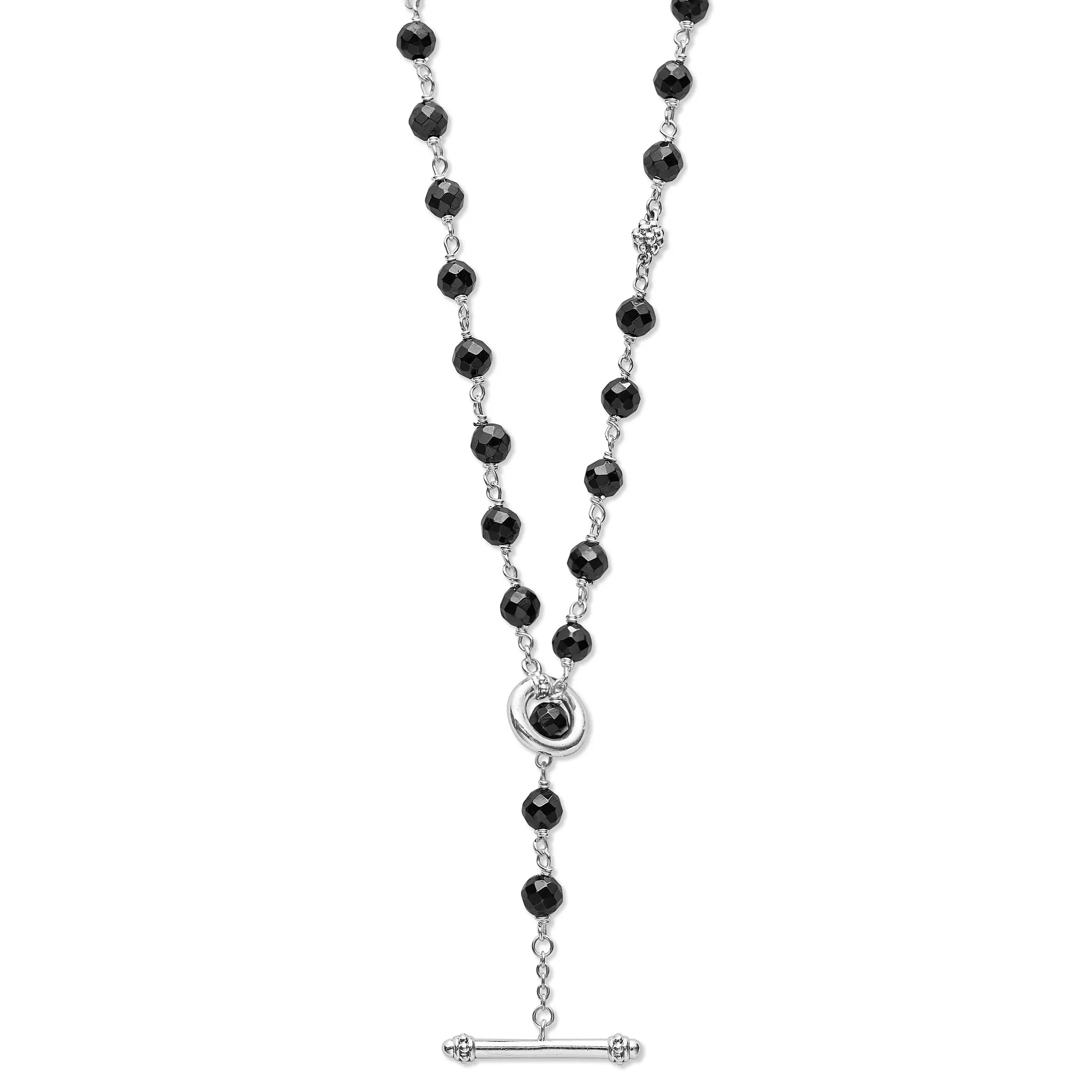Black ceramic and sterling silver Caviar beaded necklace finished with a toggle clasp. Necklace measures 34 inches.
