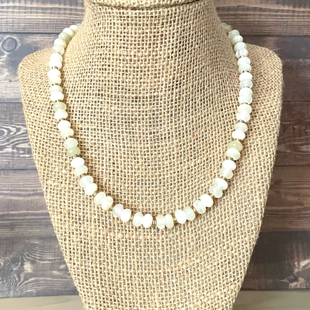 Italian Onyx beads are cream white beads with some brown inclusions.