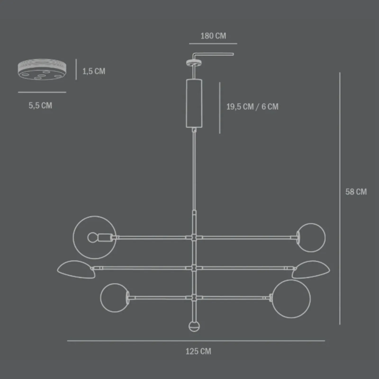 Inspired by 70s futuristic design and space age, the Sahn Chandelier is all about movement and flexibility. Each lamp arm and lampshade can turn and twist in different directions, emphasising a unique and sculptural illumination of the room.