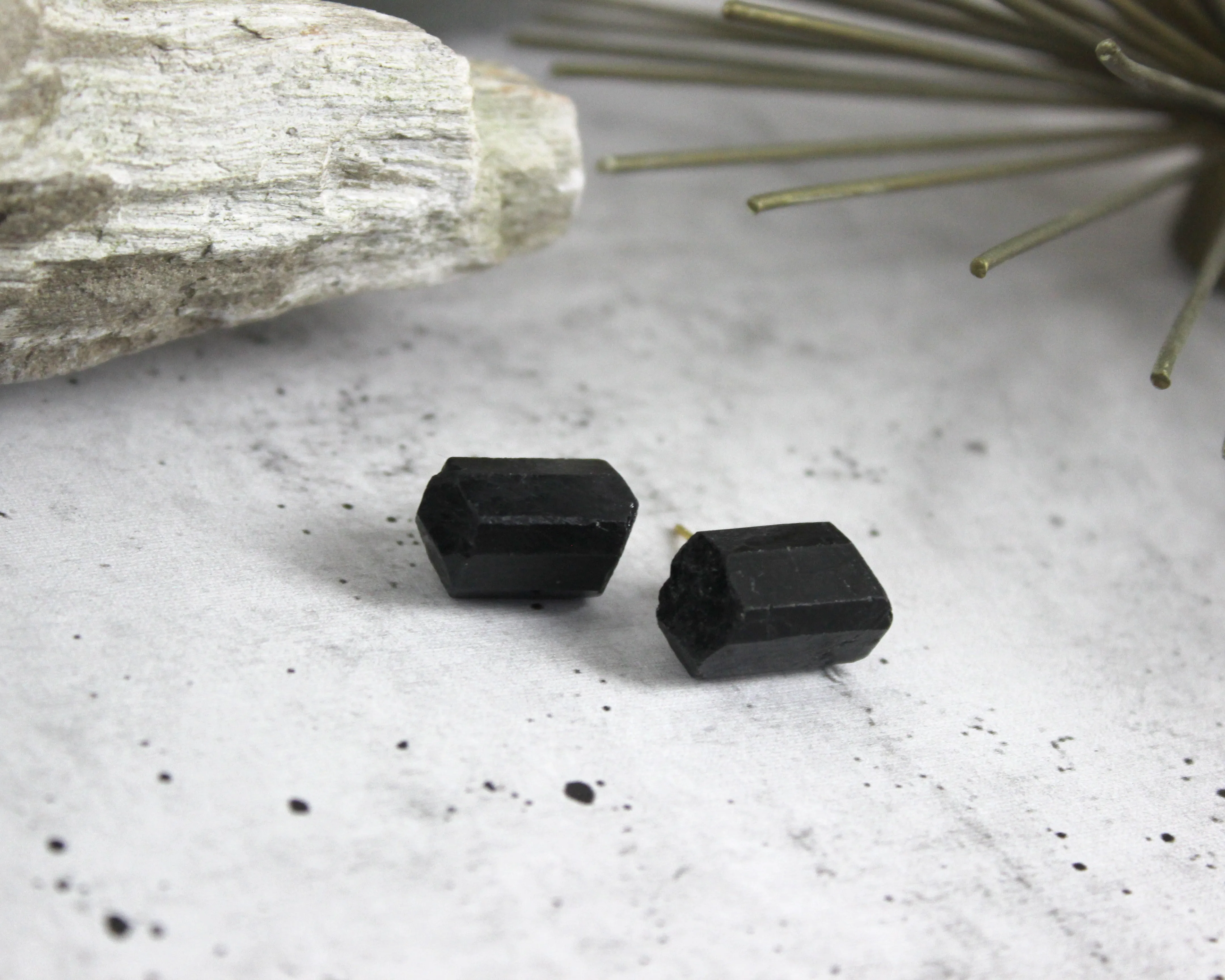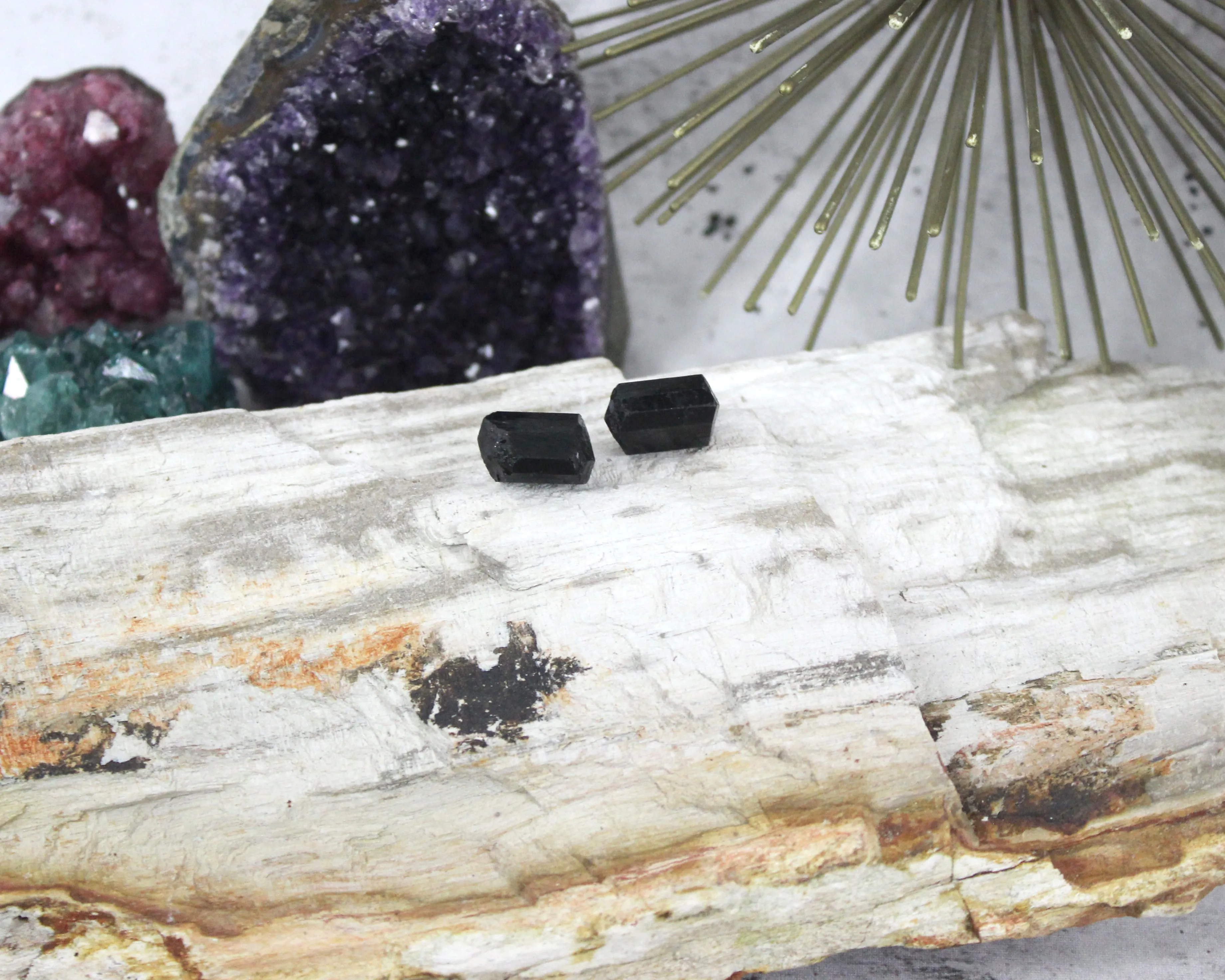 Black Tourmaline Stud Earrings w/ 24k Gold or Sterling Silver Plated Ear Posts.