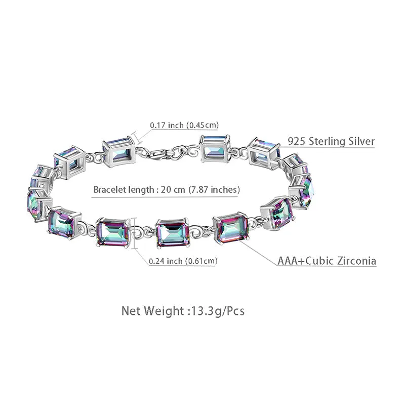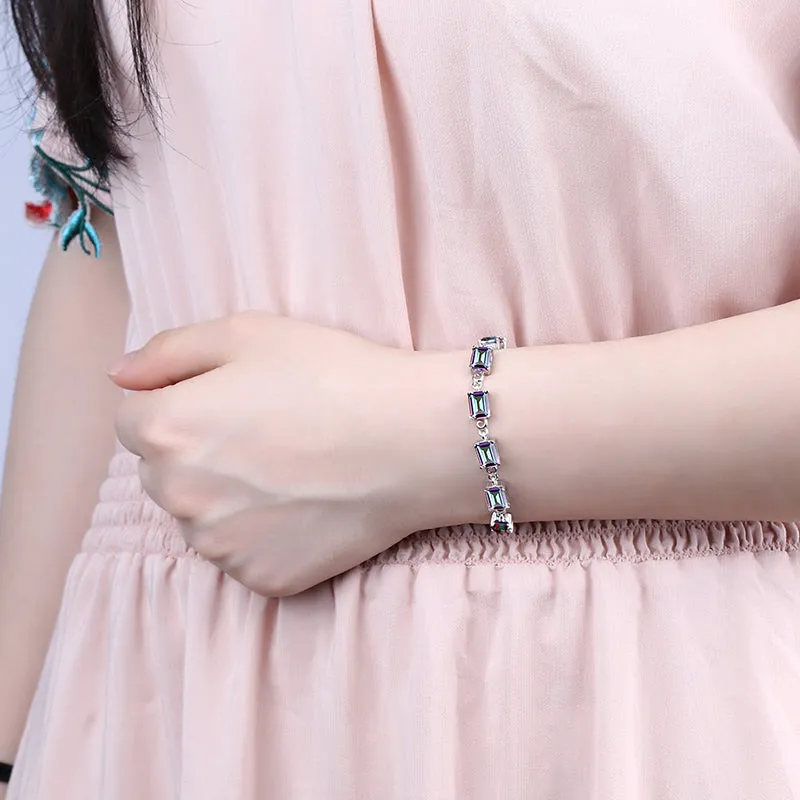 Aurora Tears Lady Girls Rainbow Mystic Topaz Multicolor CZ Bracelet Fine Jewelry